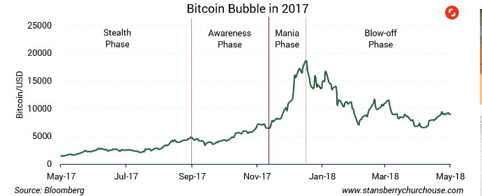 Reflecting on Perez’s framework, Bitcoin (and the crypto industry in general) appears to have been in the Frenzy Stage in 2017 and is now moving into the Turning Point, as institutions and regulators are becoming increasingly involved in the sector.[24]
