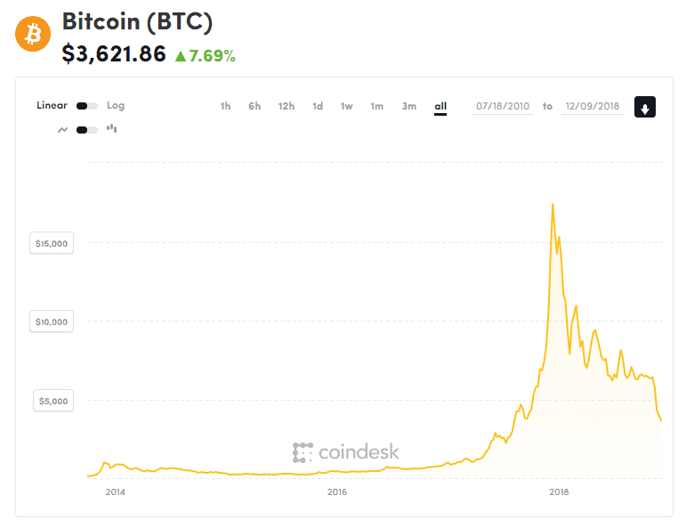 On January 1, 2017, a single Bitcoin (BTC) cost $997.69. On December 31, 2017, that same Bitcoin cost $13,860.14, and 6 months later… $7,518.24.[1] The price has dropped over 80% in 2018 — from $17,135.89 at its highest, to $3,640.56, at its lowest.[2]