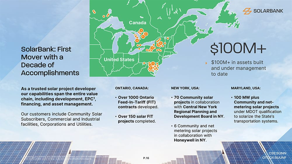 It’s hard for me to state how transformative this is. You have a company that has built large scale solar energy projects — SolarBank has built over 100 plants in North America over the last decade — with many more on the way.