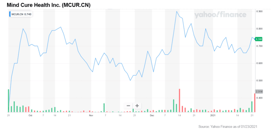 Recently, they announced a CAD$20 million (approx US$15 million) bought deal financing, which demonstrates the early enthusiasm surrounding the psychedelics space. This, even as a potential breakout in science or business has not yet materialized. The stock continues to trade volume under a dollar.[14]