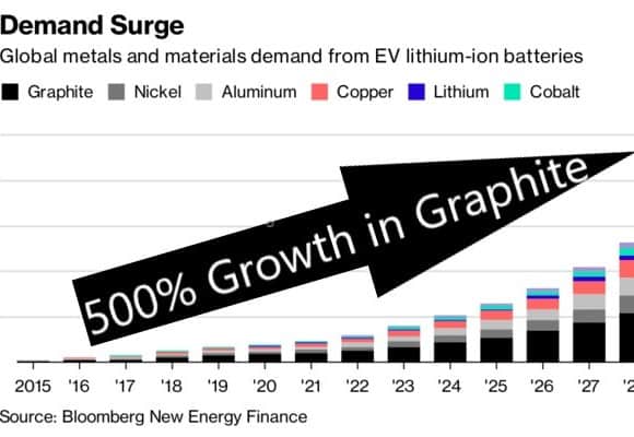 As electrical vehicles become more popular, the demand for raw materials that go into batteries are increasing. Graphite seems to be an integral material that is poised to continue to gain popularity. Currently lithium-ion batteries are the most popular choice for batteries used in electric vehicles and they generally use graphite anodes since they seem to cope well with the flow of lithium-ions.