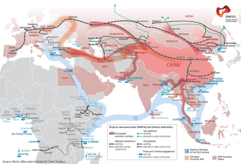 First proposed by President Xi Jinping in 2013, China’s $900 billion Silk Road Initiative is a strategy to develop and construct a vast network of railroads and shipping lanes between China and 65 countries in Asia, North Africa, the Middle East and Europe.