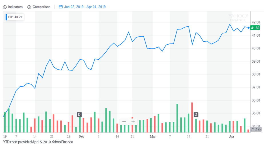 One other advantage with Brookfield is its diversification by type of infrastructure and geography. About 25% of its revenue comes from North America, 25% comes from Europe, 30% from South America, and 20% from Asia, Australia, and New Zealand. Additionally, its 35 assets include railroads, electricity and natural gas utilities, timberlands, toll roads, ports, and pipelines.