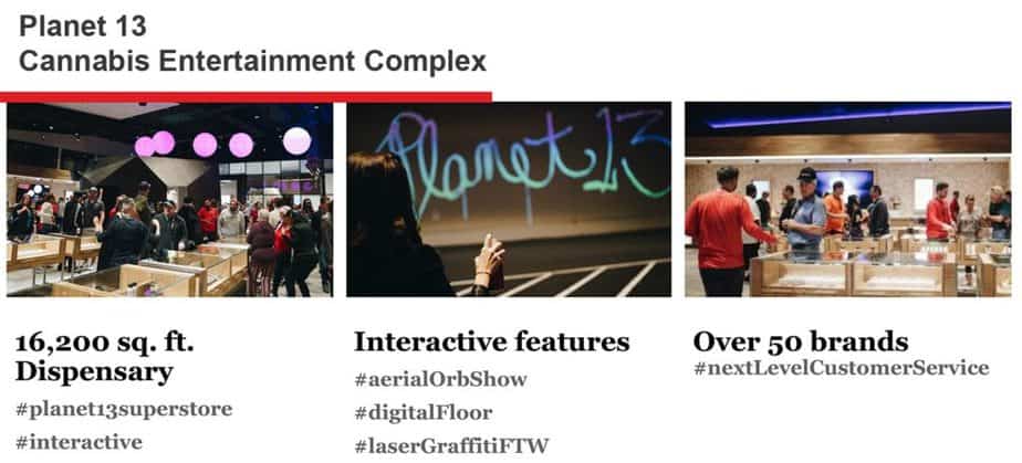 The company has created a retail immersive experience that includes a bistro/pizzeria and a 14,000 square foot production facility, which was opened in the final quarter of 2019. Planet 13 bills itself as an entertainment complex that includes 115 feet of windows where visitors can watch and learn what goes into the creation of its individual products.