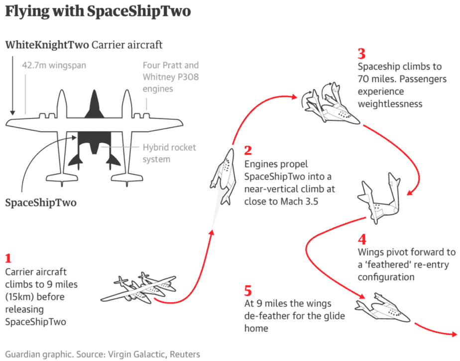 Virgin Galactic (NYSE: SPCE) operates the reusable SpaceShipTwo spaceflight system. This consists of WhiteKnightTwo, a custom-built, carrier aircraft, and SpaceShipTwo, the world’s first passenger carrying spaceship to be built by a private company and operated in commercial service.