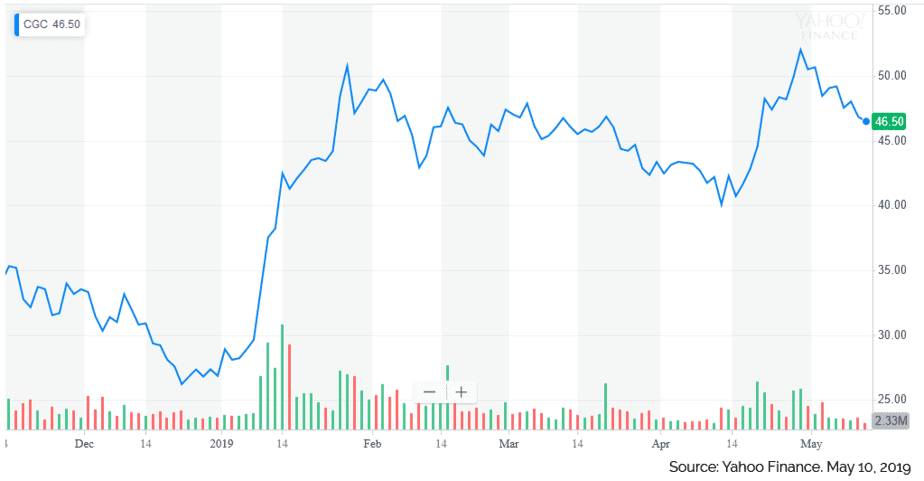 Cronos Group (Nasdaq: CRON, TSX: CRON) managed to secure a major investment from tobacco-giant Altria Group (NYSE: MO) in December 2018 of $1.8 billion for a 45% equity stake. Like Canopy Growth, they are working to establish a large global footprint.[4]